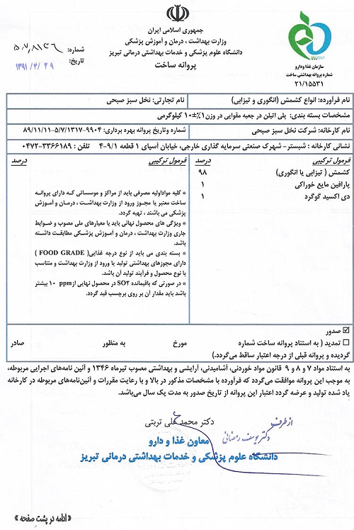 نام تجاری ( برند اصلی ) : نخل سبز