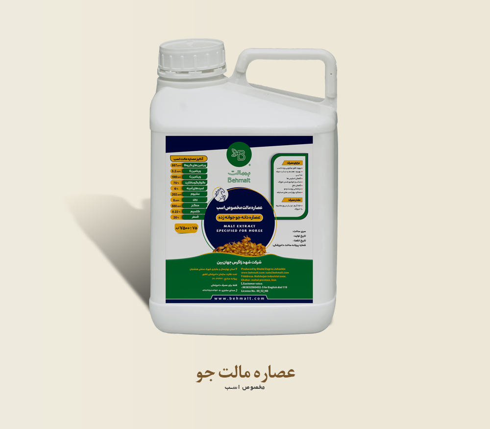 عنوان محصولات : عصاره مالت جو مخصوص طیور، عصاره مالت جو مخصوص دام، عصاره مالت جو مخصوص اسب، عصاره مالت جو مخصوص زنبورعسل، مکمل ویتامینه مخصوص زنبورعسل، پری بیوتیک مخصوص آبزیان(پری بایو آکوا)، سین بیوتیک مخصوص زنبورعسل(پرومالت)، خوراک تخمیری مخصوص دام، خمیر مالت گربه
