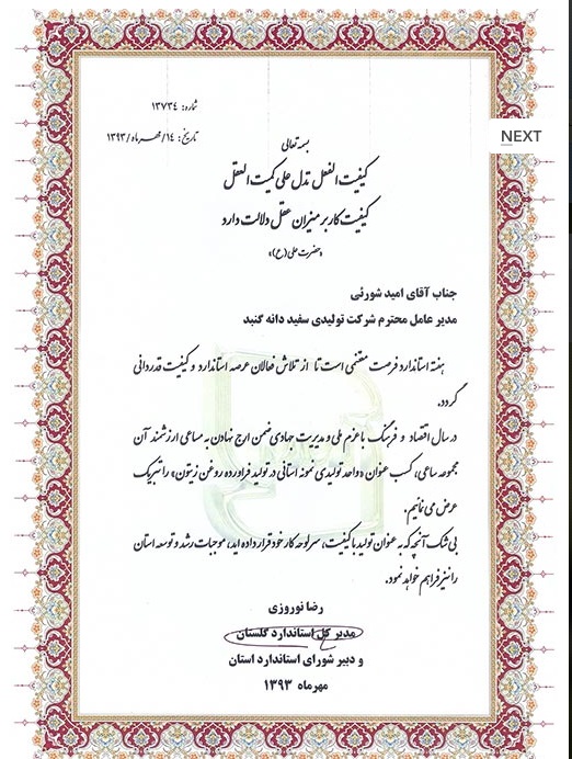 شرکت کشت و صنعت سفيد دانه گنبد با تمايلی منحصر به فرد به توليد محصولی برتر و با اهتمام به انديشه ای پويا در سال 1376 در منطقه سرسبز استان گلستان،شهرستان گنبد کاووس پای بر عرصه صنعت زيتون کشور نهاد.استان گلستان به دليل داشتن آب و هوای شبه مديترانه ای به عنوان قطب توليد زيتون با کيفيت در کشور مطرح بوده و به جهت دارا بودن متنوع ترين باغات زيتون و سطح زير کشت بالا از توان توليد زياد در اين زمينه برخوردار می باشد. شرکت کشت و صنعت سفيد دانه گنبد با قرار گرفتن در مرکز توليد زيتون دارای موقعييت استراتژيک از بابت سهولت دسترسی به باغات زيتون می باشد که اين امر نقش بسزايی در بالا بردن کيفيت محصول نهايی بر عهده دارد.خواست عظيم شرکت در دستيابی به توليدی برتر بر آن شد تا در سال 1382 با تلاشهای مستمر متخصصان و در سايه يار الطاف حق تعالی با افتتاح خط توليد، اين شرکت به عنوان يکی از توليد کنندگان صنعت زيتون حضور خود را در جغرافيای صنعت زيتون ايران زمين به نقش بنشيند.اين شرکت با توجه به نوع نگرش و ديدگاه وسيع مديران و بهره گيری از پيشرفته ترين فن آوری ها و بکارگيری ماشين آلات توليدی مدرن توانسته در سال 1386 به عنوان مقام برتر کيفيت در توليد روغن زيتون کاملاً طبيعی کشور از جشنواره ملی زيتون دست يابد.